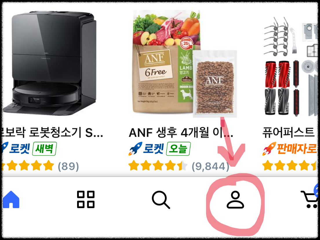 1.쿠팡 시작 화면에서 아래 사람 표시 클릭